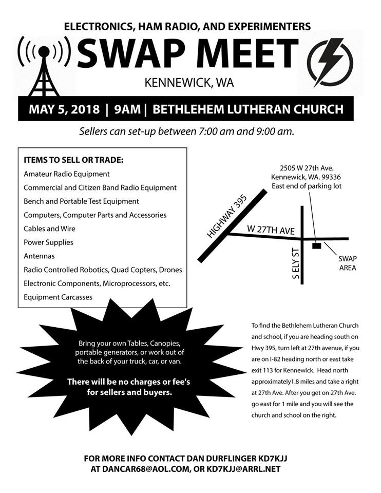 Tri-Cities Ham Radio Swap Meet, May 5th, 2018 Share this: Click to share on X (Opens in new window) X Click to share on Facebook (Opens in new window) Facebook More Click to email a link to a friend (Opens in new window) Email Like Loading... Related