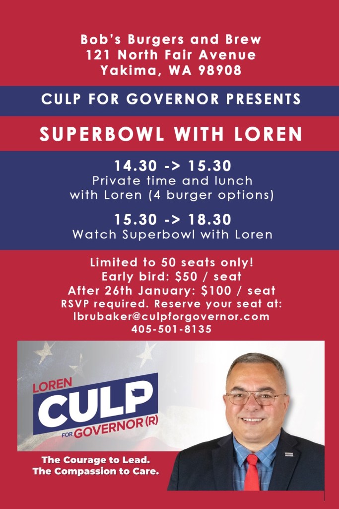 Loren Culp, who is running for governor in 2020, will be in speaking on September 28th.
