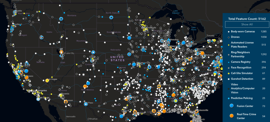 A map of Ring-police partnerships in the United States. Clicking the map will bring you to an interactive version.
